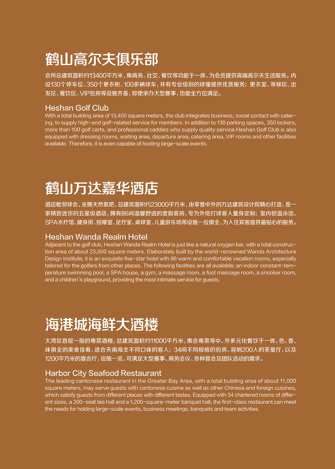 藏在大湾区深处的世外桃源“鹤山高尔夫俱乐部”坐落在粤港澳大湾区后花园-江门鹤山市共和镇,毗邻佛开高速、江鹤高速共和出口。从广州、佛山、中山、珠海到俱乐部的车程只需1小时,交通便捷。俱乐部占地1600亩,球道总长度为7264码,标准杆72杆,由全球顶级高尔夫球场设计公司-----美国尼克劳斯设计公司精心打造的18 洞山地风格锦标球场。球场的果岭、球道、发球台草种选用纯种的美国海滨雀稗铂金草,以专业的维护保养创造了非常具有挑战性的果岭速度,使打球的体验更加乐趣横生。